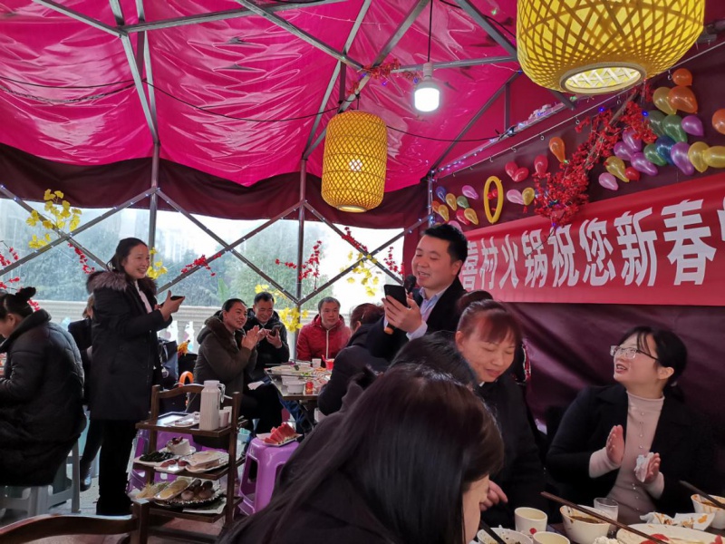 这一次,我们大成公司的年会定在了华创的【小喜村】火锅店,没有多么的高大上,但却是重庆人最朴实和实惠的爱好。正如常总所说的一般:“我们可以去那种很精致、摆的很好看的地方吃团年饭,但等一系列活动下来,菜都凉了。只有火锅这种接地气的地方,才能一直保持我们的温度和热情。”直到最后,我们整个会场的气氛,也如火锅的温度和我们大成的发展一般,经久不衰。