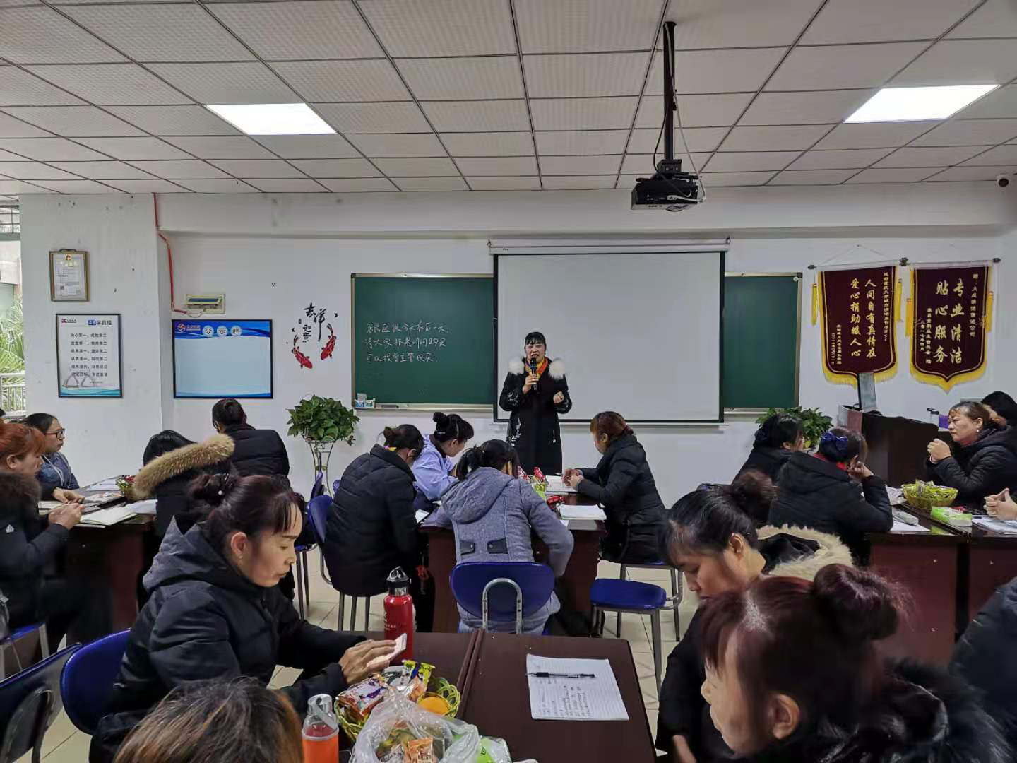 之后,管理培训会的重点——管理经验分享正式开始。科创学院片区的张组长和三教片区的黄主管分别进行了讲话:张组长从环境的检查方式改革开始,讲到了近期工作中遇到的部分困难。最后,她又讲述了团队精神在解决问题中的帮助,表达了分工与合作相协调的重要性与实用意义;黄主管则重要突出了管理中“榜样”的作用,深刻的体现出了团队建设的必要性,使参会人员都受益良多。